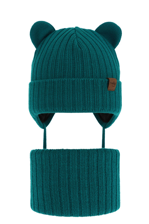 Téli szett fiúknak: sapka és sál smaragdzöld Ferven