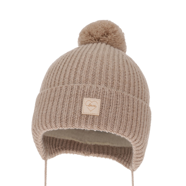 Lány téli sapka bézs színű pomponnal Werbena