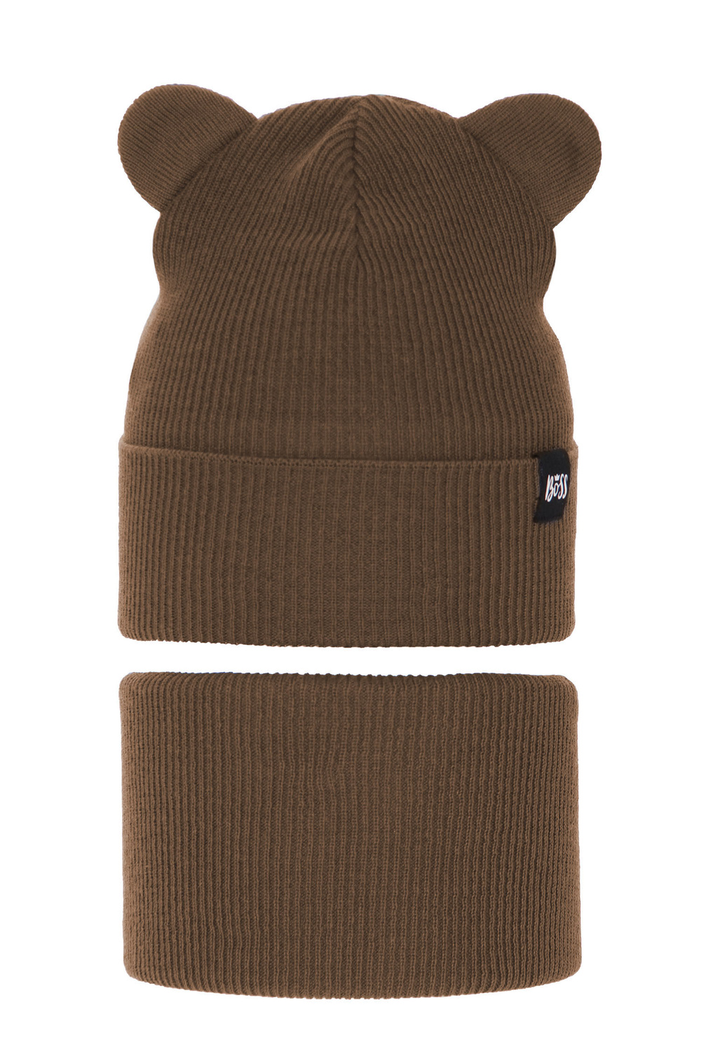 Őszi/tavaszi szett fiúknak: sapka és csősál, pamuttal, teve színben Grajan